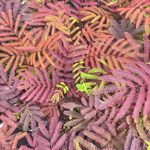 巧克力合欢就是这般奇景!独特的褐红色绒球状花序,自带高级复古滤镜,观花赏形两不误。耐晒耐旱易打理,对土壤不挑剔,新手也能轻松驾驭。庭院一隅、阳台一角,它都能扎根生长,成为你家辨识度拉满的植物名片。